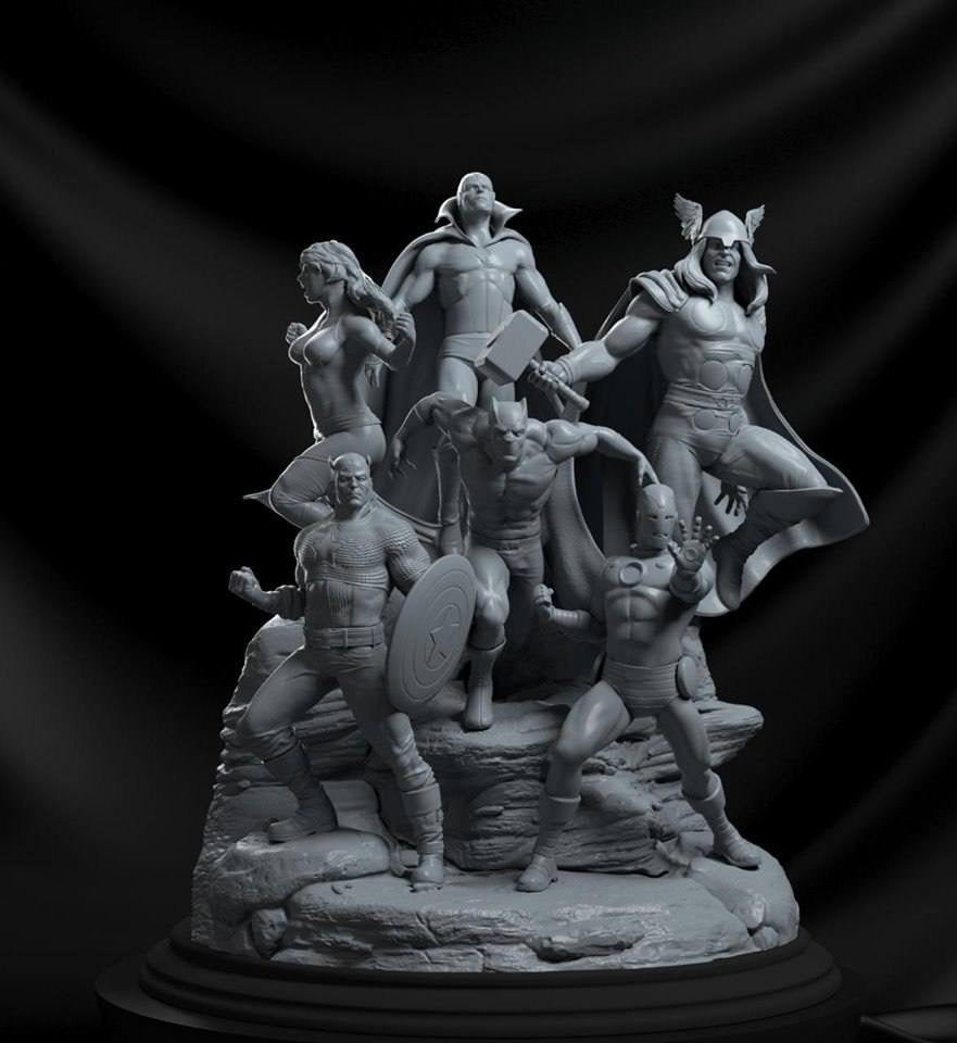 Avengers diorama Stl files 3D printing is a static assembly model and its moderation and adaptation for different types of 3D printers. To reduce the amount of filament needed for generated support, we chose the best cutting model.