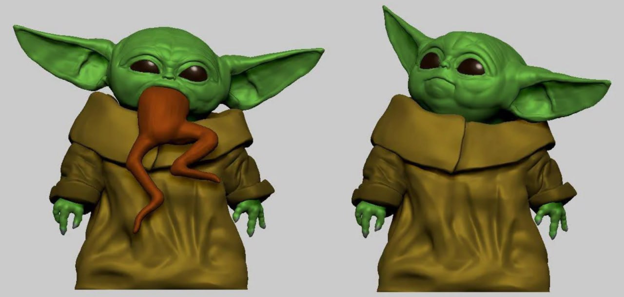 Grogu eating frog 3d printing stl files, a format supported by most 3D printers.