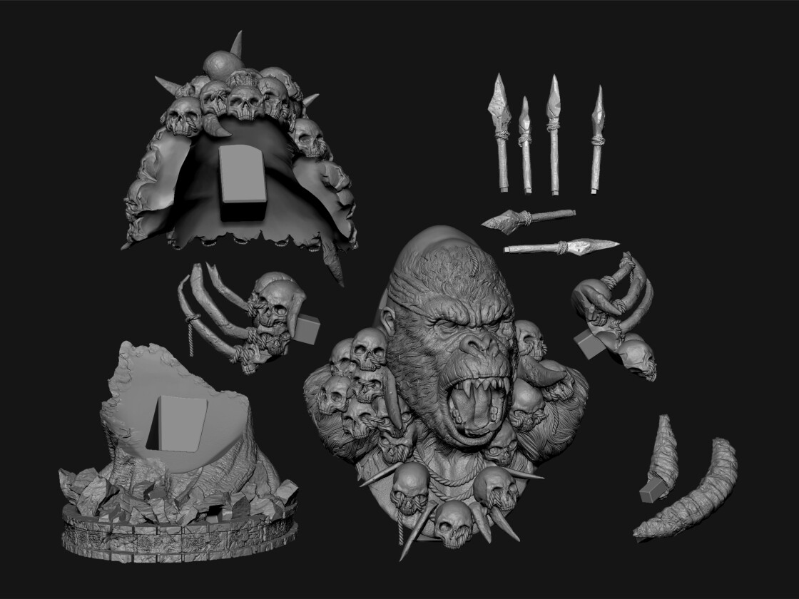 King kong bust 3d print stl file is a static assembly model and its moderation and adaptation for different types of 3D printers. To reduce the amount of filament needed for generated support, we chose the best cutting model.