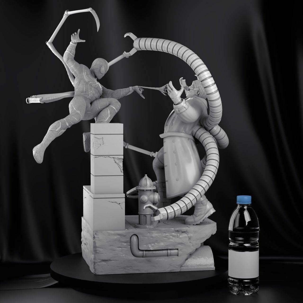Spiderman v Dr octopus diorama 3d printing stl files is a static assembly model and its moderation and adaptation for different types of 3D printers. To reduce the amount of filament needed for generated support, we chose the best cutting model.