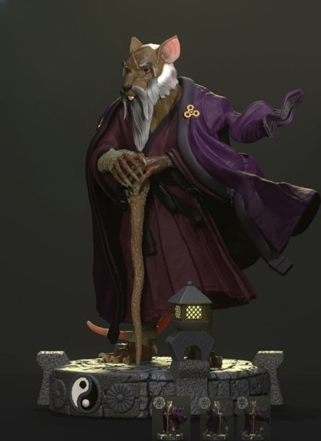 Splinter TMNT STL files for 3d printing model is a static assembly model and its moderation and adaptation for different types of 3D printers. To reduce the amount of filament needed for generated support, we chose the best cutting model.